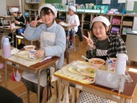 ごはん 牛乳 ししゃもの竜田揚げ もやしのごま酢和え 里芋と生揚げの旨煮教室から...