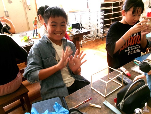 6年3組の図工の授業の様子です。「未来の私」もだいぶ仕上がってきました。小物作り...
