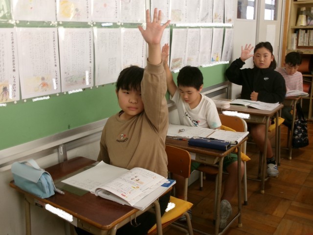 3年1組の算数の授業の様子です。3けた✕1けたの掛け算の筆算が、2けた✕1けたの...