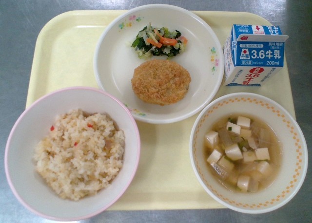 ナシゴレン 牛乳 野菜コロッケ キャベツソテー 春雨スープ教室からの一言「ナシゴ...