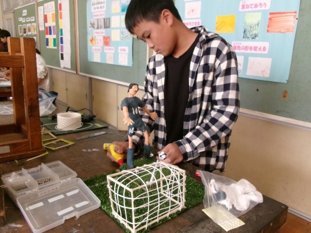 1年生は図工で「スルスルビューン」という、紐の上を滑る仕組みを利用した工作をして...