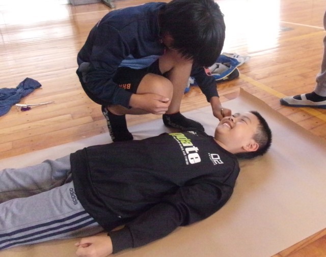 2時間目に火災を想定した避難訓練を行い、原分署の消防隊員のみなさんにご指導いただ...