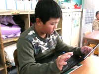 3年2組の算数の授業の様子です。パソコンを使って三角形を仲間訳しています。