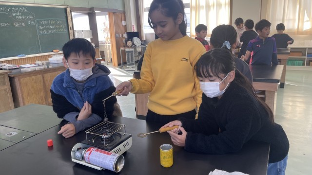 4年1組の理科の授業の様子です。金属を熱したり冷やしたりした時の体積の変化を調べ...