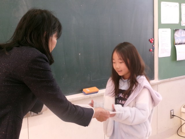 子どもたちは担任から2学期の通知表を受け取っています。2学期を担任と一緒に振り返...