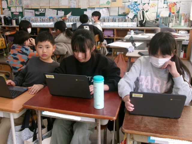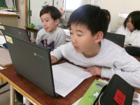 5年3組の算数の授業の様子です。パソコンに入った新しいソフトの使い方を確認してい...