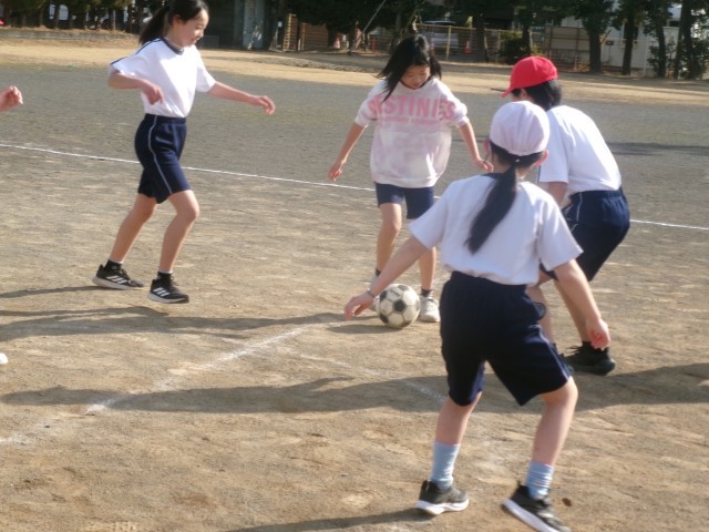5年1組の体育の授業の様子です。ウォーミングアップで大なわの8の字跳びをしていま...