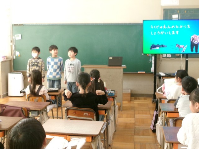 2年1組の生活科の授業の様子です。明日の参観日で行う学習発表会のリハーサルをして...