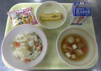 五目寿司 牛乳 かつおいり厚焼きたまご たらのつみれ汁 ひなあられ今日は、3月3...