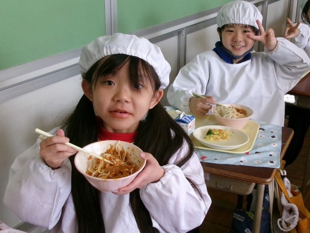 今日は、令和7年度の給食最終日でした。今日はミートソース!おいしかったです!!