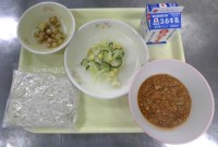 ミートソース(ソフトめん) 牛乳 コールスローサラダ ポテトと大豆の磯部和え教室...