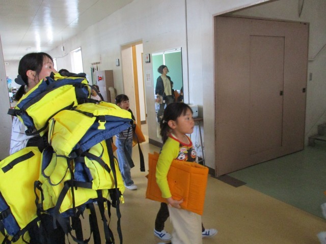 起用室に戻ってからは、もしもに備え、ライフジャケットを付ける練習もしました。すべ...