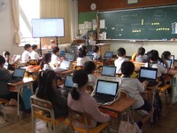 「風切るつばさ」の学習をしています。クルルの心情変化を、グループで考えています。