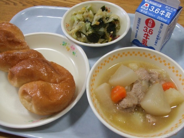 今日のこんだては、あげパン、ぎゅうにゅう、ポトフ、かいそうサラダです。