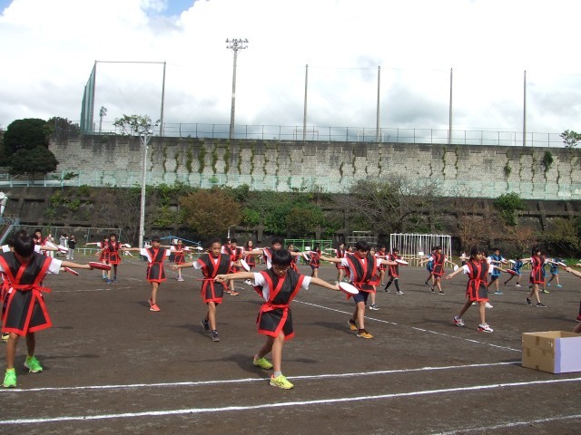 5、6年生の表現はエイサーと組体操です。手先足先までしっかりと演技ができており、「浮島プライド」を全員で表現することができました。