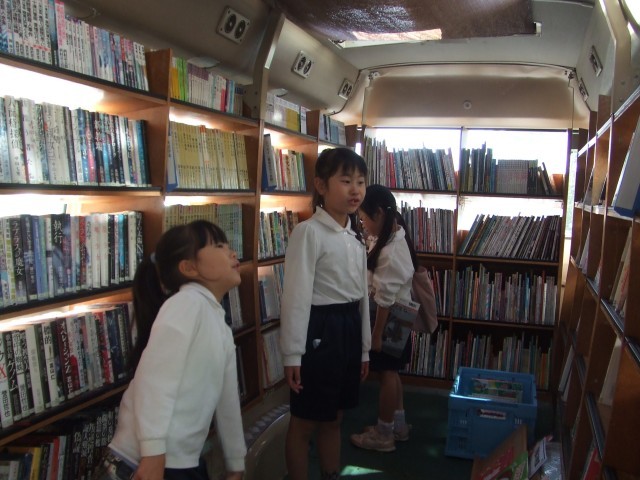 今日は巡回図書の日です。昼休みに本を返したり借りたりする人が集まりました。