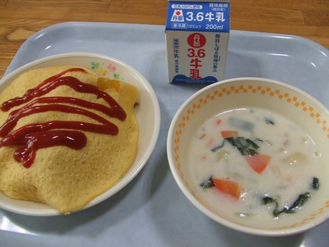 今日の給食(12月4日) 公開日 2025/12/04 更新日 2025/12/04 今日の給食 今日のこんだては、オムライス、ぎゅうにゅう、ベーコンと野菜のクリームスープです。 おはなし給食の日です。「きゅうしょくしつのにちようび」のオムライスだそうです。おいしそうですね。 いいね(0)
