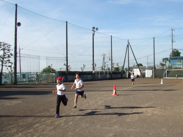 体育の時間に持久走の記録会を行いました。それぞれの目標に向かって一生懸命走りました。