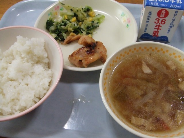 今日の給食(2月16日) 公開日 2026/02/16 更新日 2026/02/16 今日の給食 今日のこんだては、ごはん、ぎゅうにゅう、鶏肉のチリソース焼き、キャベツとほうれん草の炒め物、ベーコンと野菜のスープです。 炒めものもスープも具がたっぷり入っています。チリソースの鶏肉も香ばしくておいしいです。 いいね(0)