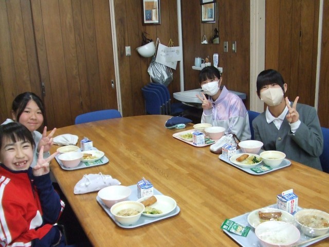 6年生会食(2月26日) 公開日 2026/02/26 更新日 2026/02/26 学年 今日も校長室に4人の6年生が来てくれました。 好きな給食のメニューや修学旅行のホテルでの話で盛り上がりました。 今日もとても楽しい会食になりました。 いいね(0)