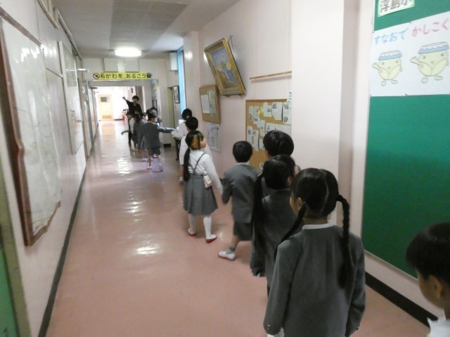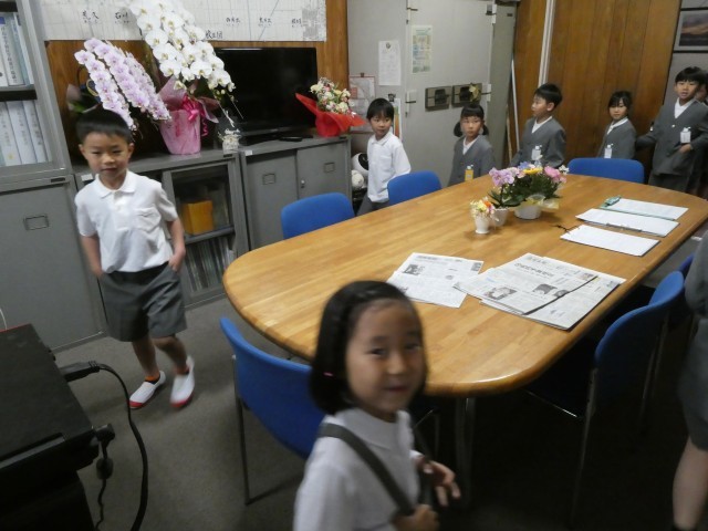 担任の先生と学校の中を探検しました。校長室にも立ち寄って一周回ってきょろきょろ。