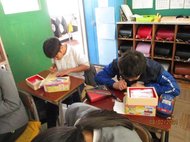 6年生は図工で、卒業記念のオルゴールを作っています。自分のお気に入りのイラストや文字を丁寧に彫り進めています。出来上がりが楽しみです。