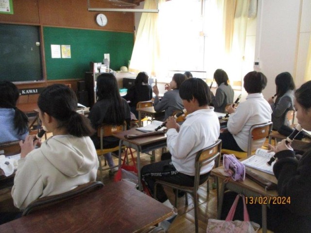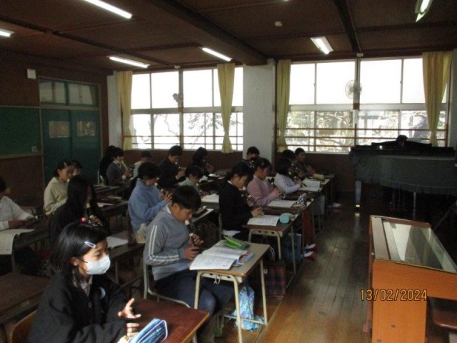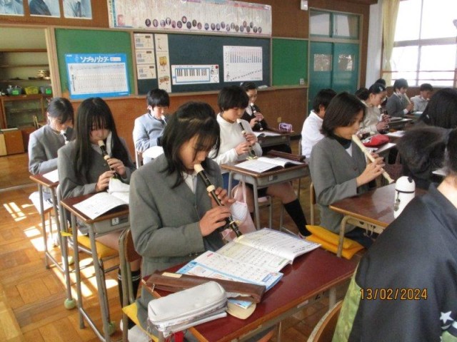 5年生は、音楽で卒業式の退場の曲を練習しました。ゆっくりなテンポで、丁寧に演奏することができました。