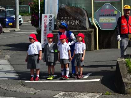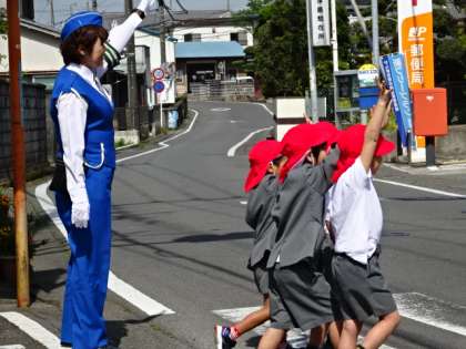 右を見て、左を見て、前を見て、後ろも見て、すべて安全だったら渡りましょう。