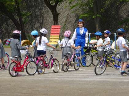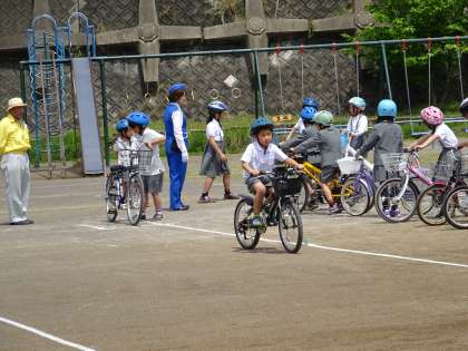 自転車を発進させる時も停止させる時も、停止線でしっかり止まって安全確認をしなくてはなりません。(安全確認の時は、停止線より少し前に進みます。)