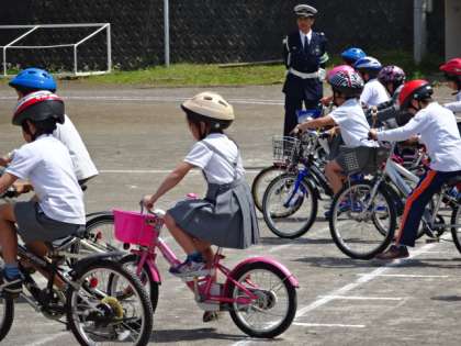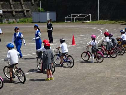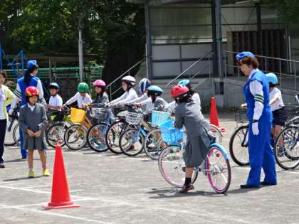 交通安全指導員さんの指示に従って、一所懸命に取り組みました。