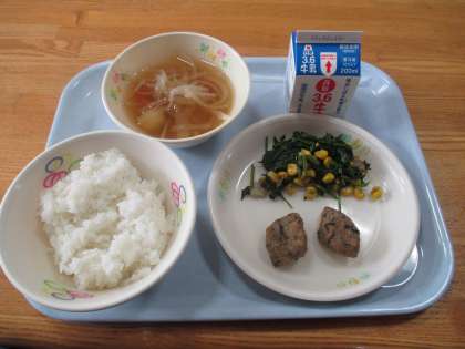 No.91 12月8日(木) 「ひじき入りとりつくね」 公開日 2016/12/08 更新日 2016/12/08 今日の給食 ○今朝、とても冷え込み、気温は4度でした。寒い中でしたが、子どもたちは元気に登校してきました。「おはようございます」の挨拶が、とてもさわやかでした。 今日の献立:ごはん・牛乳・ひじき入りとりつくね・ほうれん草のソテー・うずら玉子のスープ いいね(0)