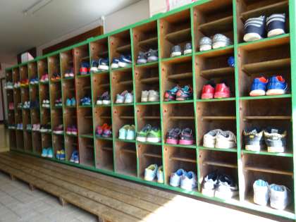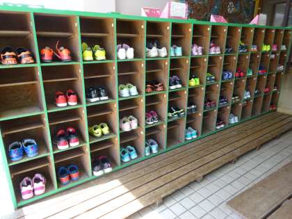 ○今日は、子どもたちが普段使用している靴箱の写真を撮りました。靴箱にびしっと靴が整頓して収められています。「靴はきちんとかかとをそろえて靴箱に入れましょう」は、浮島中学校と共通の取組です。特に6年生がしっかりとできていました。