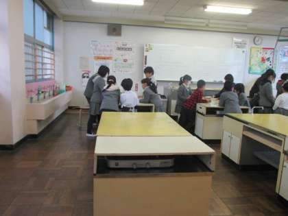 朝の時間、1年生から5年生が縦割りグループごとに集まっています。けれど、いつもリーダーとしてがんばってくれている6年生の姿はありません。本年度の縦割り解散式に向け、お世話になった6年生へのメッセージを下級生が用意していたのです。ここでのリーダーは5年生。6年生からのバトンをしっかり引き継ぐため、がんばっています。