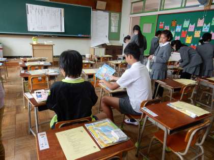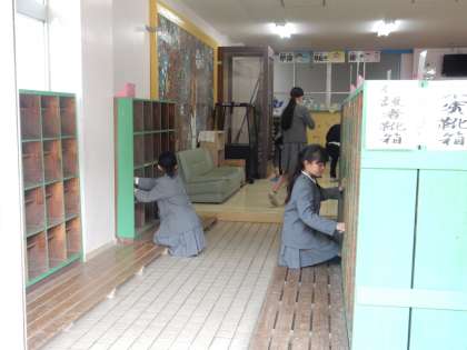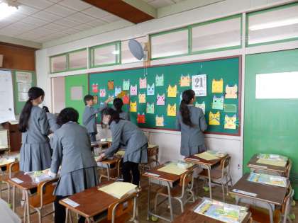 6日の日、6年生が入学式準備のため学校に来ました。体育館、1年生の教室、1年生に配る物の準備など、みんなが新1年生のために働きをしました。