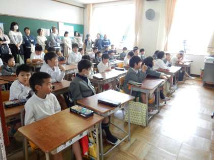 22日は、今年度最初の授業参観日でした。1年生は、「あくしゅだいさくせん」、2年生は「しをすきになろう」、3年生は「0のある計算のし方」について勉強しました。みんな、たくさんのおとうさんやおかあさんに見守られて、ちょっぴり緊張しているように見えました。
