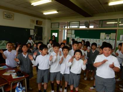 なんだか楽しそうな歌声が聞こえてきたので、のぞいて見たら、2年生が教室で、ロンド橋を歌いながらやっていました。さらに、ビンゴの歌も手拍子しながら、英語で歌ってくれました。みんなのにこにこな顔は、とてもすてきでした。