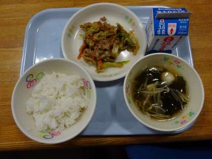 今日の献立:ごはん・牛乳・回鍋肉・わかめスープ