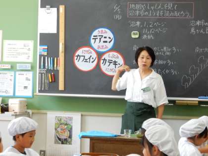 お茶のインストラクターに新茶を入れてもらい、みんなでおいしくいただきました。小さな紙コップでしたが、おかわり7杯という人もいました。