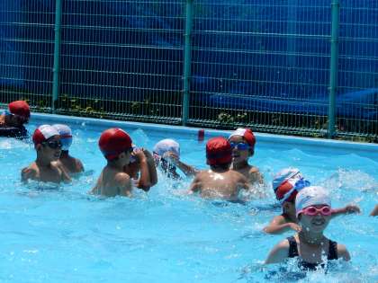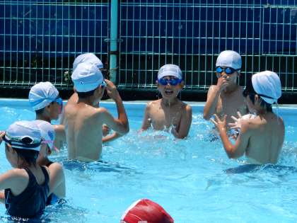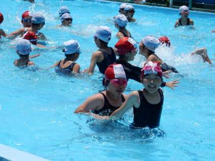 晴天の中、プール開きを行いました。風が少し吹いていたのですが、そんなことはへっちゃらで、3,4年生は元気ににプールにとびこみ、「洗濯機」や友達ともぐりっこなどをして、今年度学校での初プールを思うぞんぶん楽しんでいました。