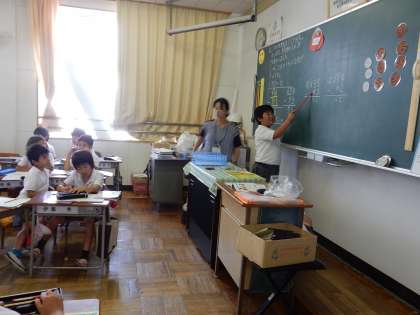 1年生は、学校探検クイズ、2年生はくり下がりのあるひき算、を勉強しました。