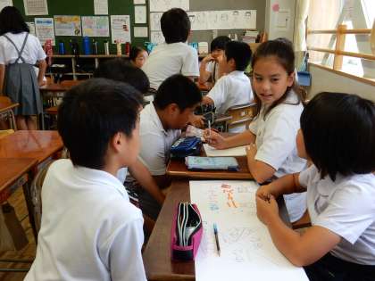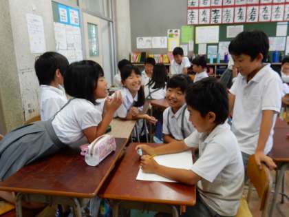 4年生が読解の時間に、学校の中でどんなユニバーサルデザインができるかいろいろアイディアを出し合い、みんなで分類していました。1年生のために、学校みんなのために・・・。いったいどんなユニバーサルデザインを提案するのか楽しみです。