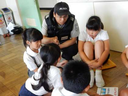 3年生がALSOKの方々に一人でおるすばんしている時に気をつけることを教えてもらいました。もし、おるすばんしている時に電話がかかってきたら?一人で家に帰るとき気をつけることは?などみんなで考えました。