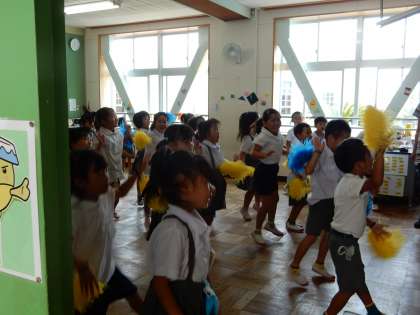 1年生は、運動会のダンスを思い出しながら元気に教室で踊っていました。
