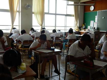 夏休みまであと1日 公開日 2017/07/20 更新日 2017/07/20 学校生活 5年生は、体育館で、「お誕生日&1学期ありがとうの会」を楽しそうに行っていました。 6年生は、しっかり学習のまとめとしてテストに取り組んでいました。 いいね(0)
