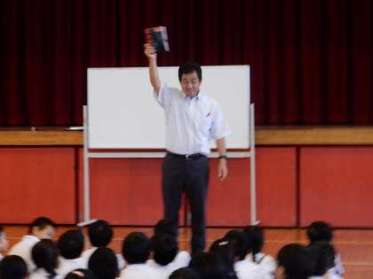 校長先生がお話の中で、大人になってから読んで心に残っている本と子どもの頃夢中になって読んだ本を紹介してくれました。2学期みんなが本を手に取り、いい本との出会いができることを願っています。