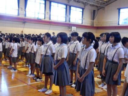 むし暑い中ですが、子どもたちが元気に登校し、2学期の始業式を行いました。体育館にそろった子どもたちの顔を見ていると、それだけで、なんだかわくわくしてきました。