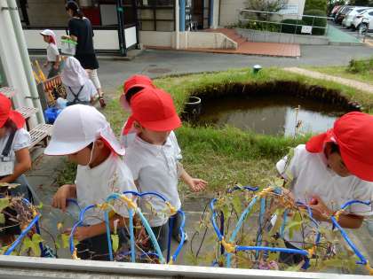 1年生は、1学期から大事に育ててきたあさがおの種取りをしました。