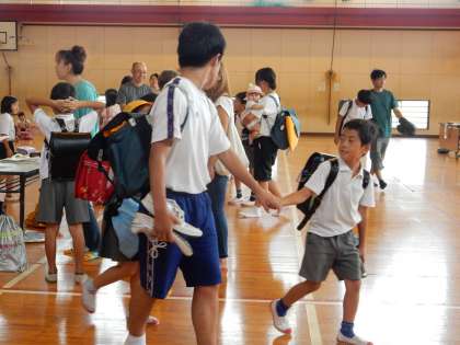 6日(水)に、「東海地震注意情報(黄色レベル)」発令を想定した小中合同引渡訓練を行いました。中学生も、小学生も、浮島小の体育館に避難しました。みんな、とてもすばやく避難することができました。保護者の方々も、忙しい中、時間をとっていただき無事訓練を終えることができました。ありがとうございました。