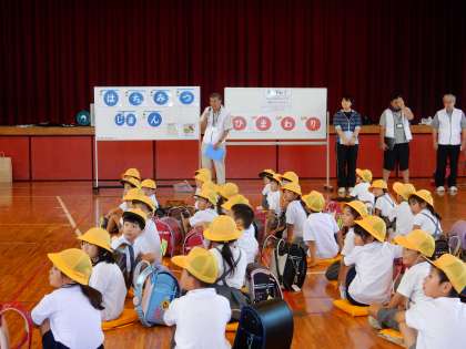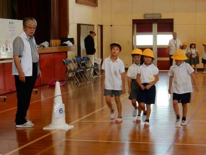 1年生が、「子どもの体験型防犯講座」を行いました。自分がもし不審者にあったらどうすればよいか、犯罪に遭わないための知識や、万が一犯罪に遭った時に自分の身を守る方法を実際に体験しながら学びました。