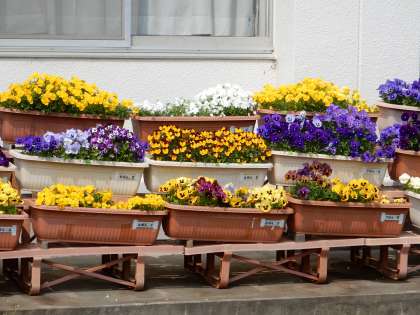浮島小学校では、みんなが学校に来るのを、昨年度1年生が育てたチューリップや、5年生が種から育てたパンジーや、校門の桜、花ボランティアの方々が手入れをしてくださった花々が、今か今かと待っています。6日の日が楽しみです。